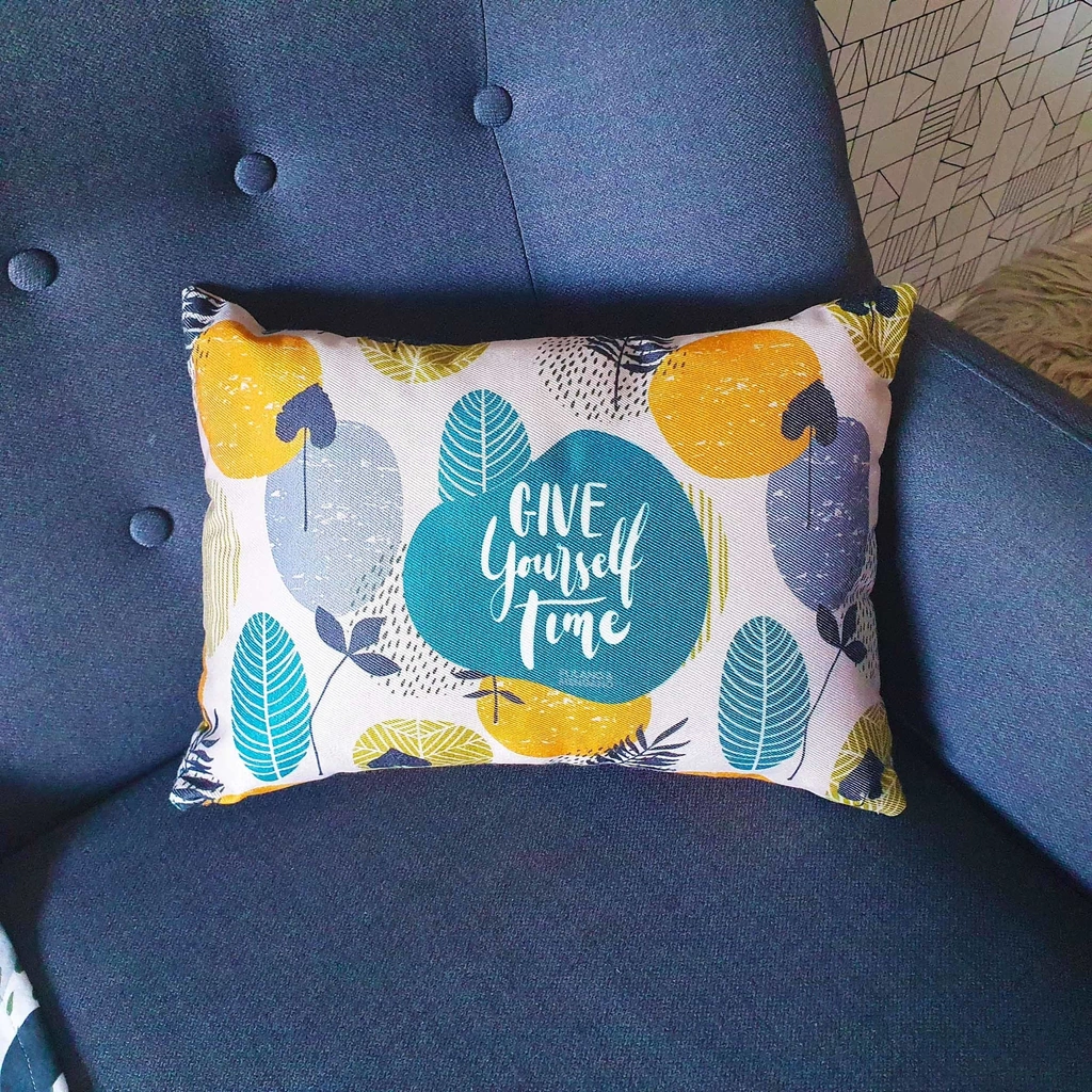 1 Almohadón con funda relleno de vellón siliconado. Medidas: 30x40 cm.